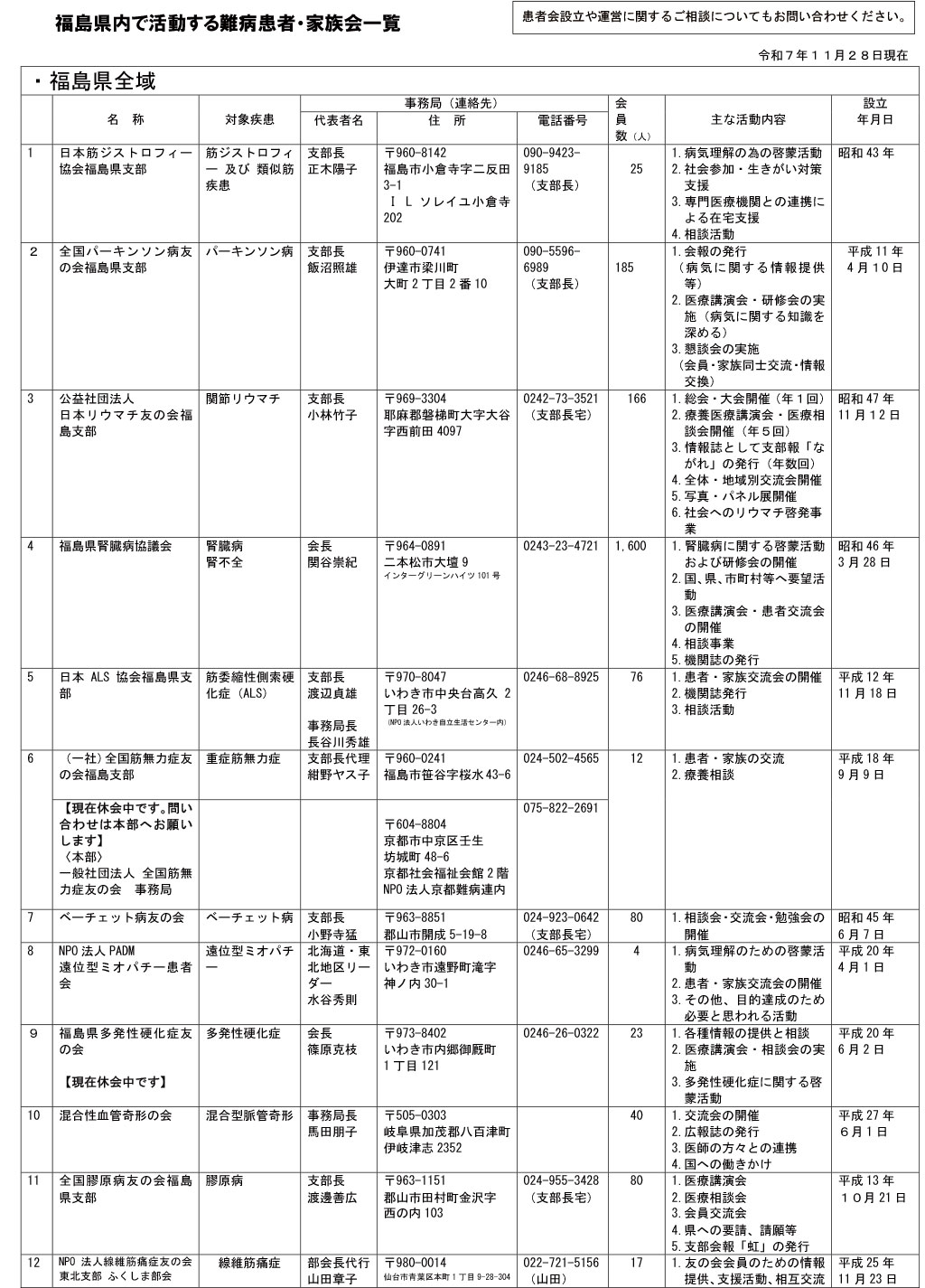 詳しくは福島県障がい福祉課 難病担当 ☎024-521-7237 までお問い合わせください。